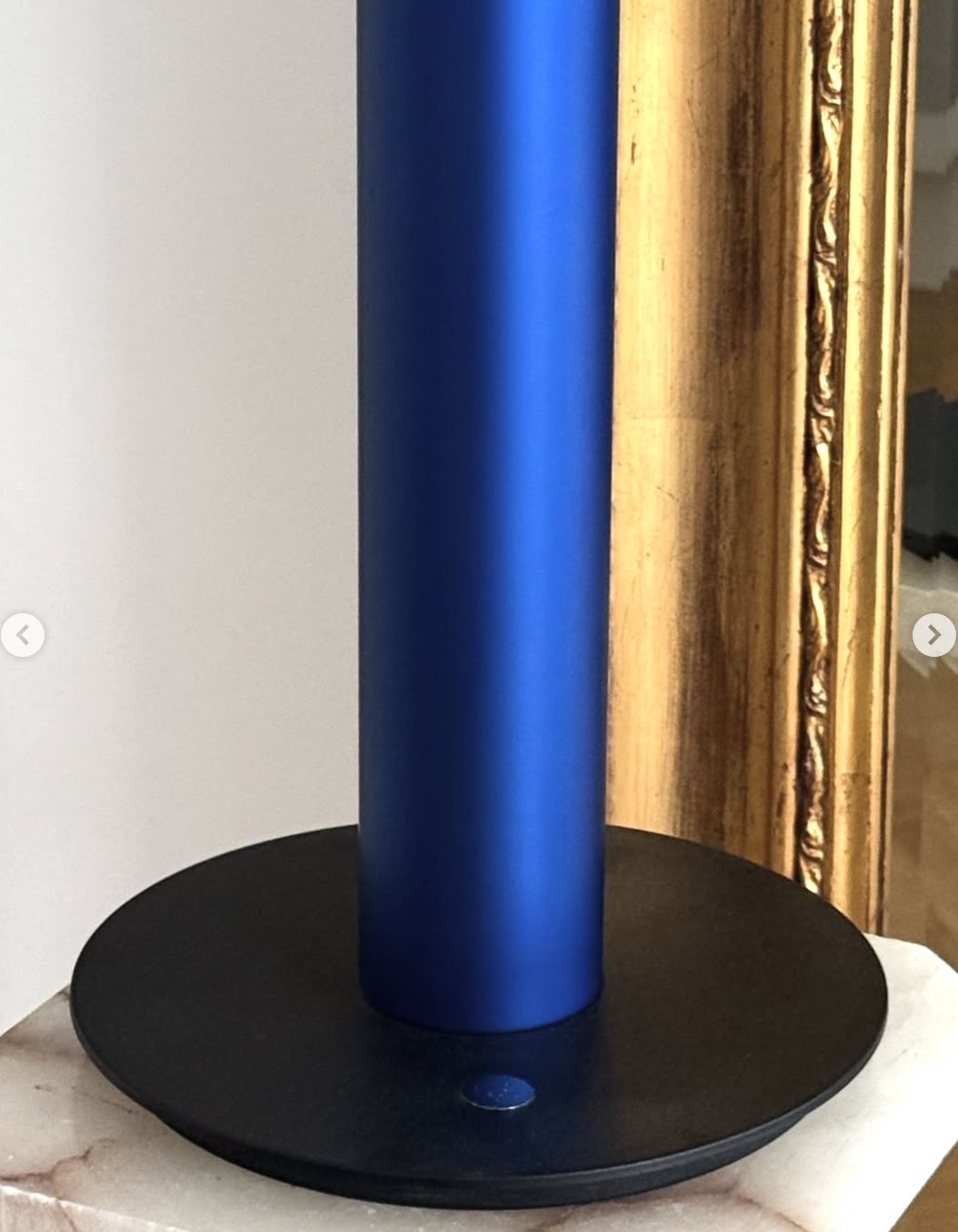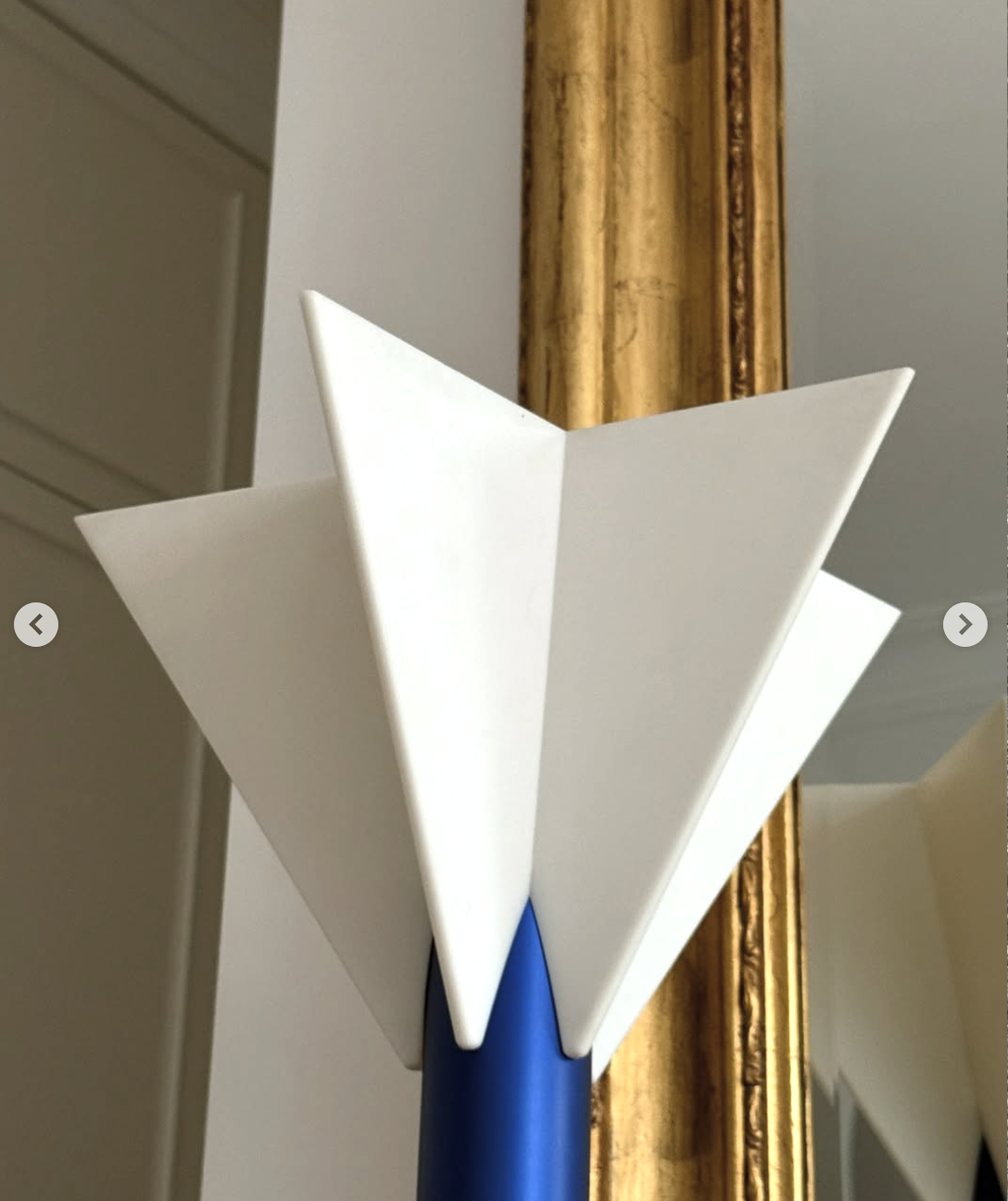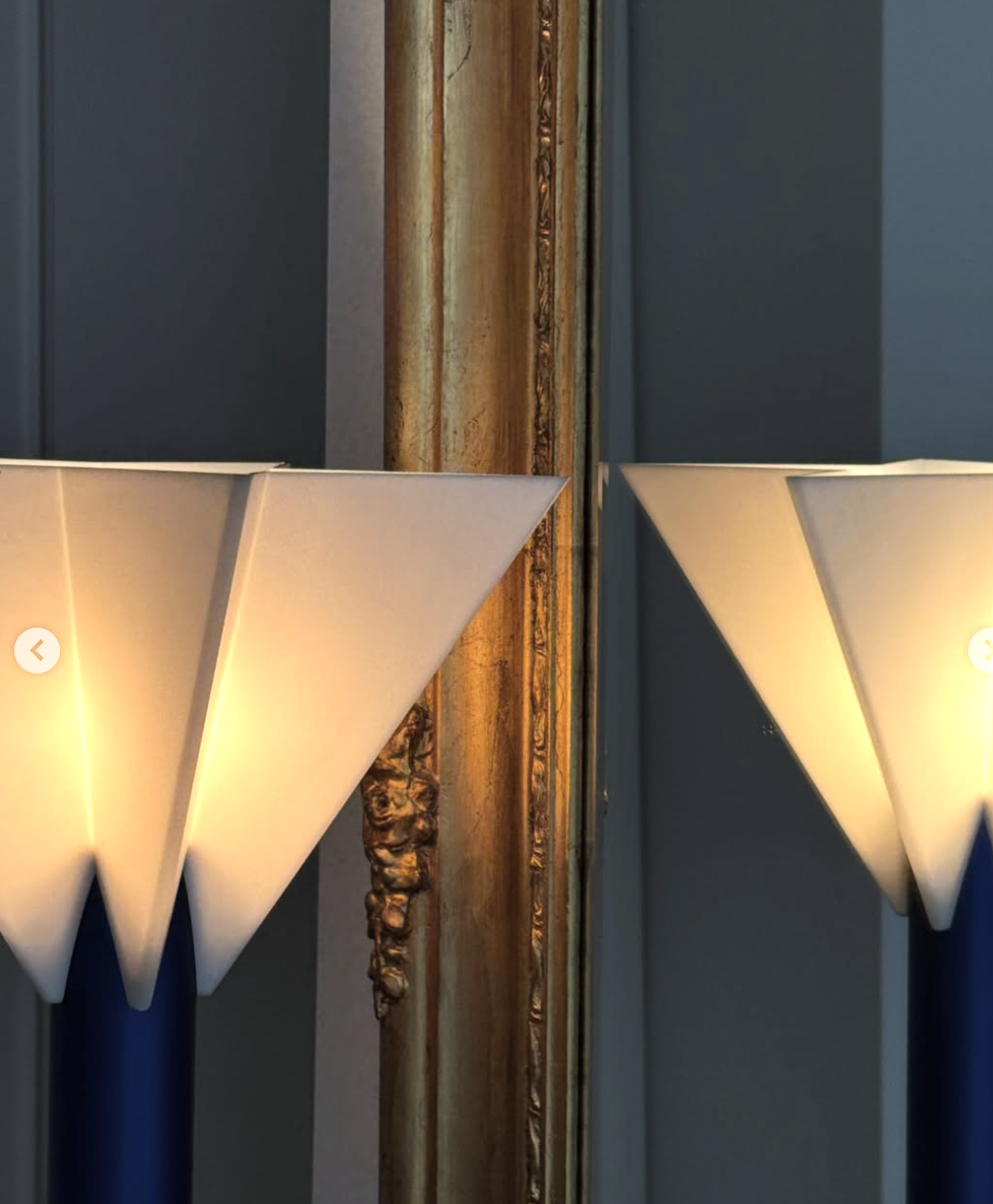 Lampka stołowa w mocnym elektryzującym kolorze z pięknym geometrycznym kloszem.