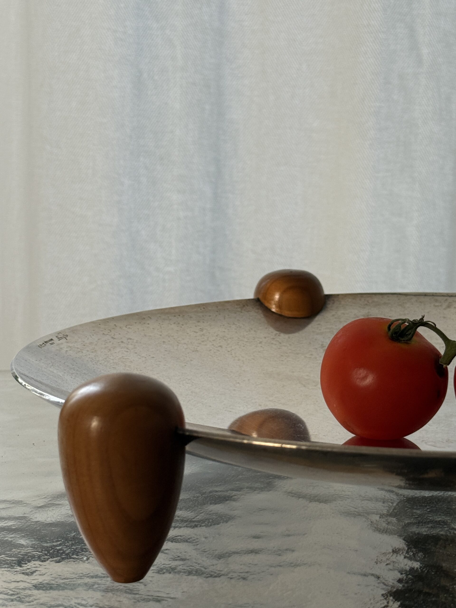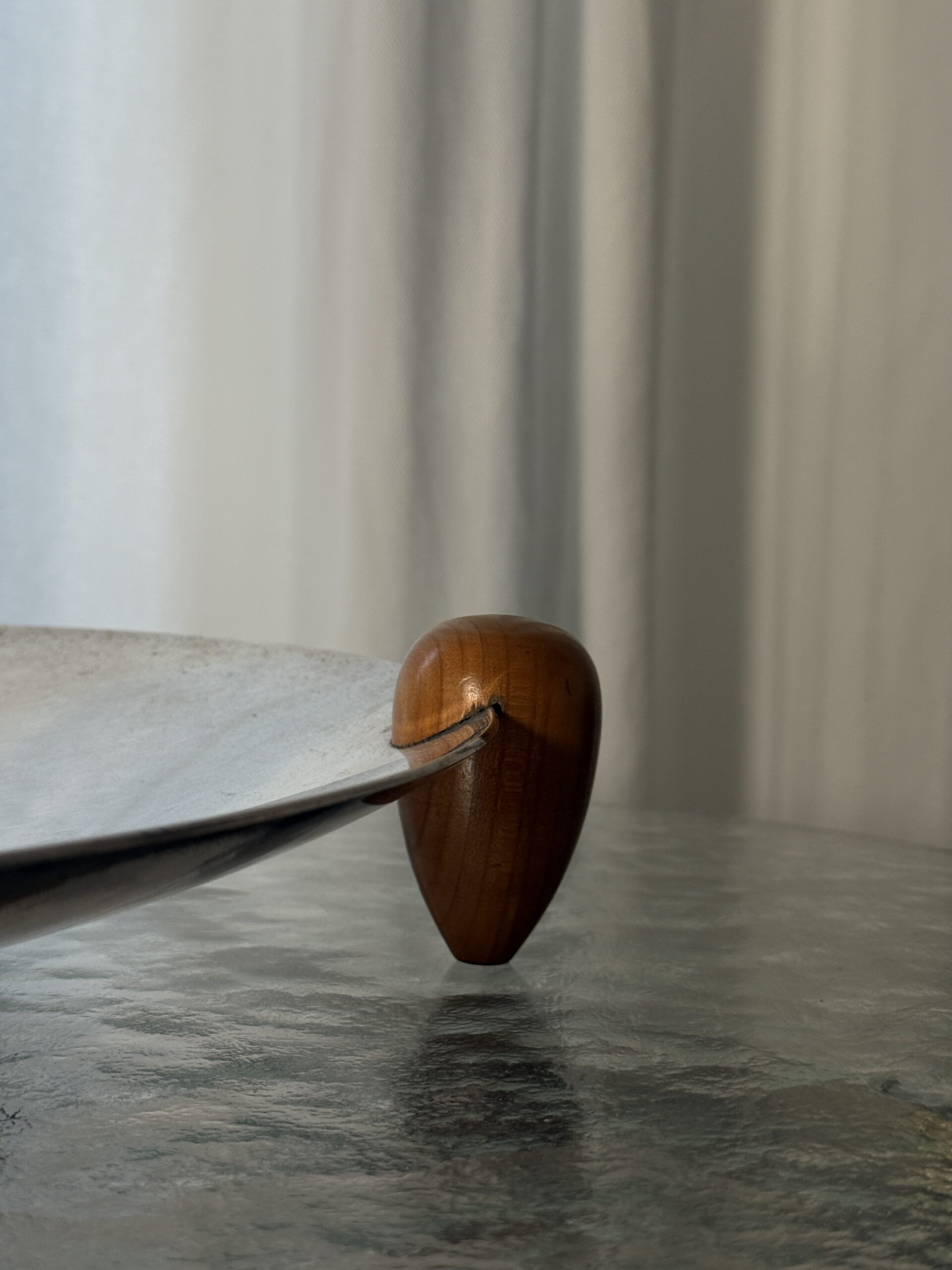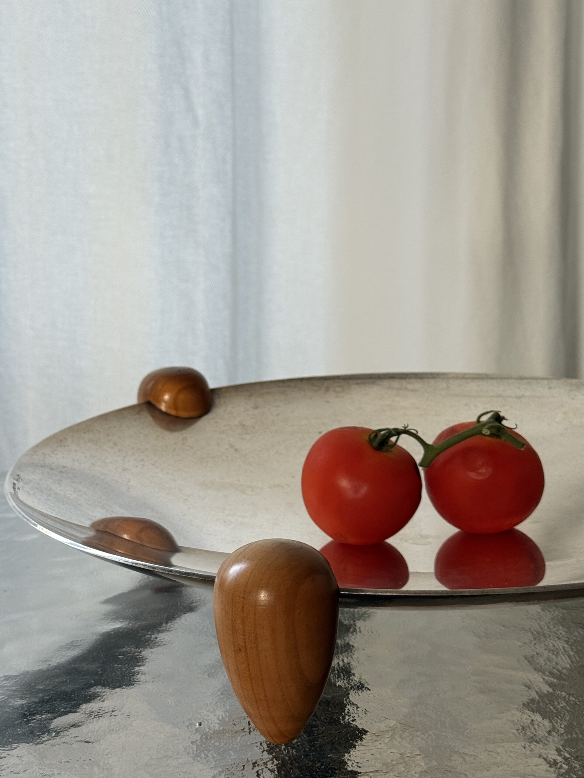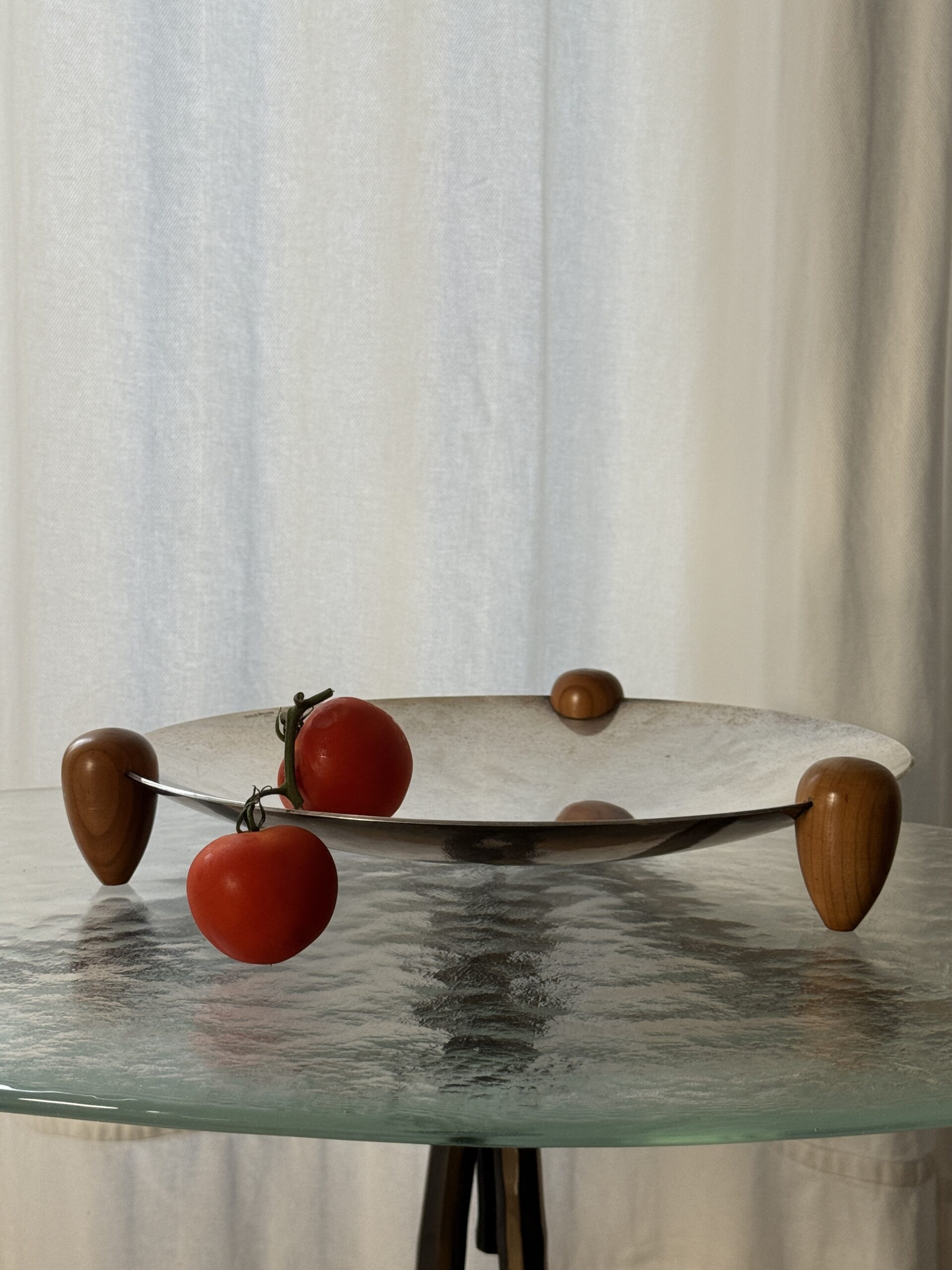 Duża posrebrzana patera na drewnianych nogach, wyprodukowana przez Cassetti we Włoszech, lata 70. Sygnowana na rancie.