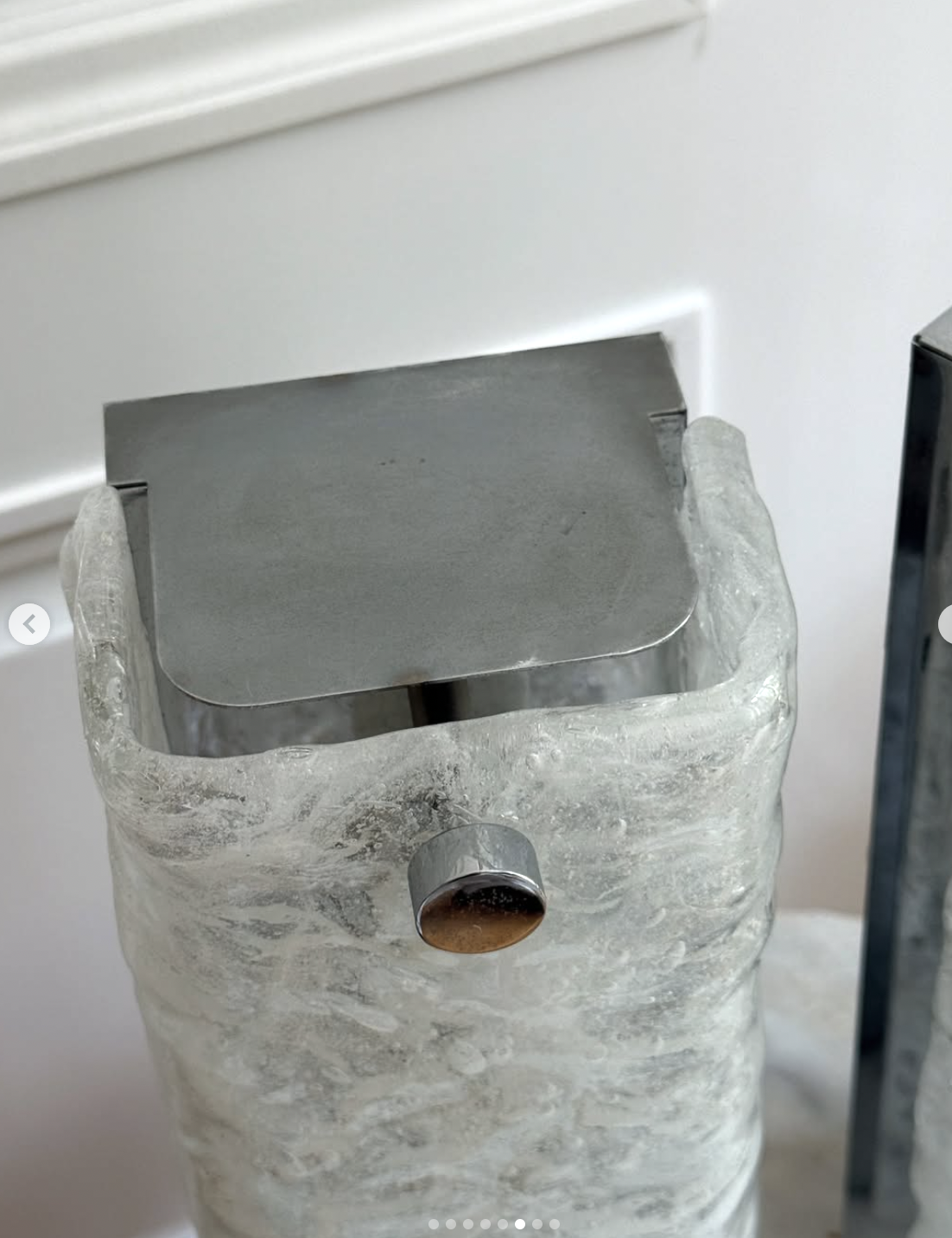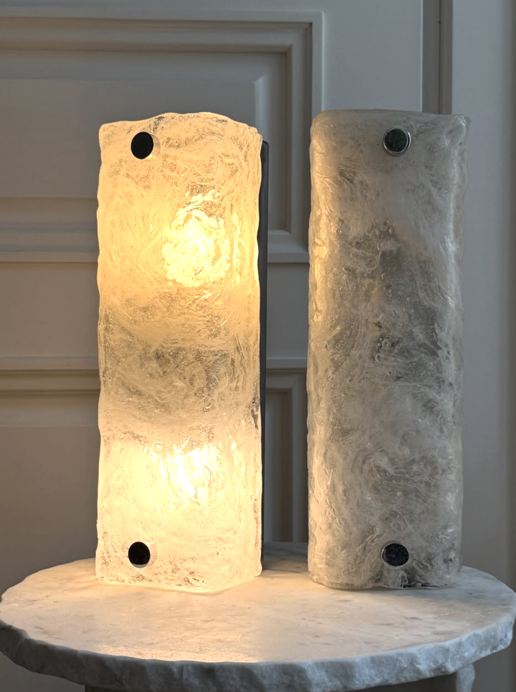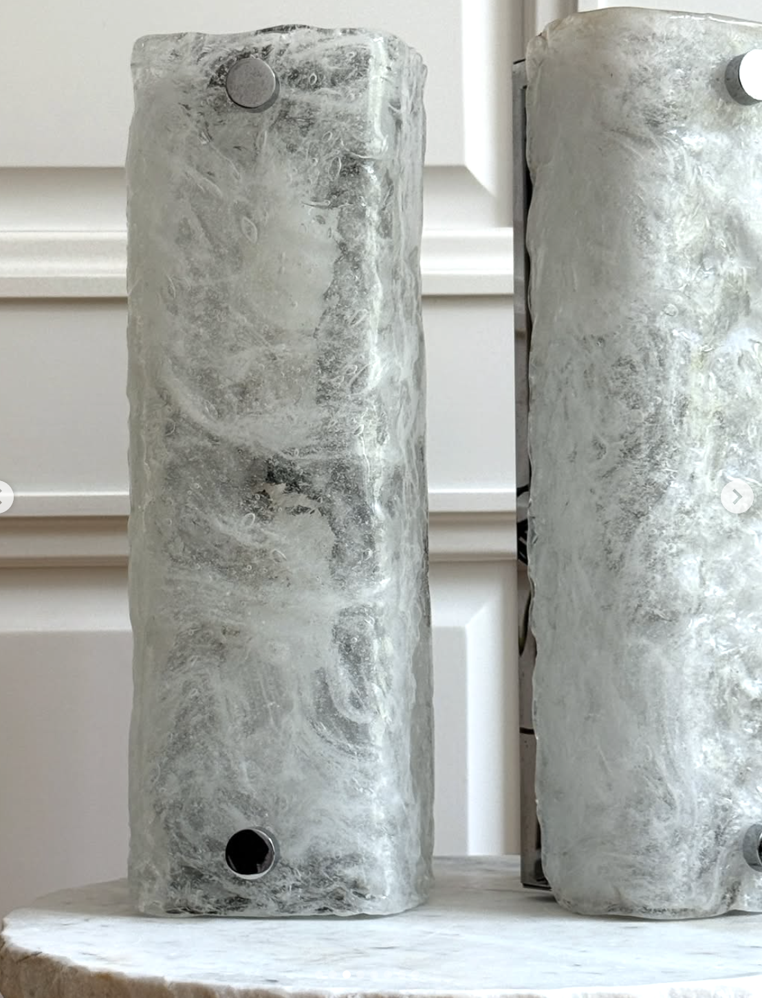 Zestaw kinkietów o rzadkiej transparentno-białej tafli szkła Murano osadzone w stalowej ramce, wyprodukowane przez manufakturę Hillebrand, Niemcy lata 70.